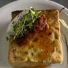 Muzzarella, salsa blanca, Portobello Panceta ahumada